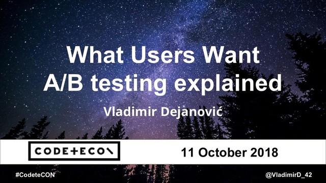 What Users Want, A/B testing explained [CodeteCon 2018]