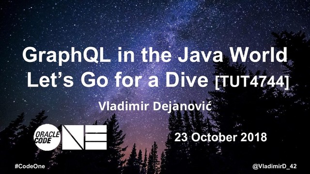 1. #CodeOne @VladimirD_42 GraphQL in the Java World Let’s Go for