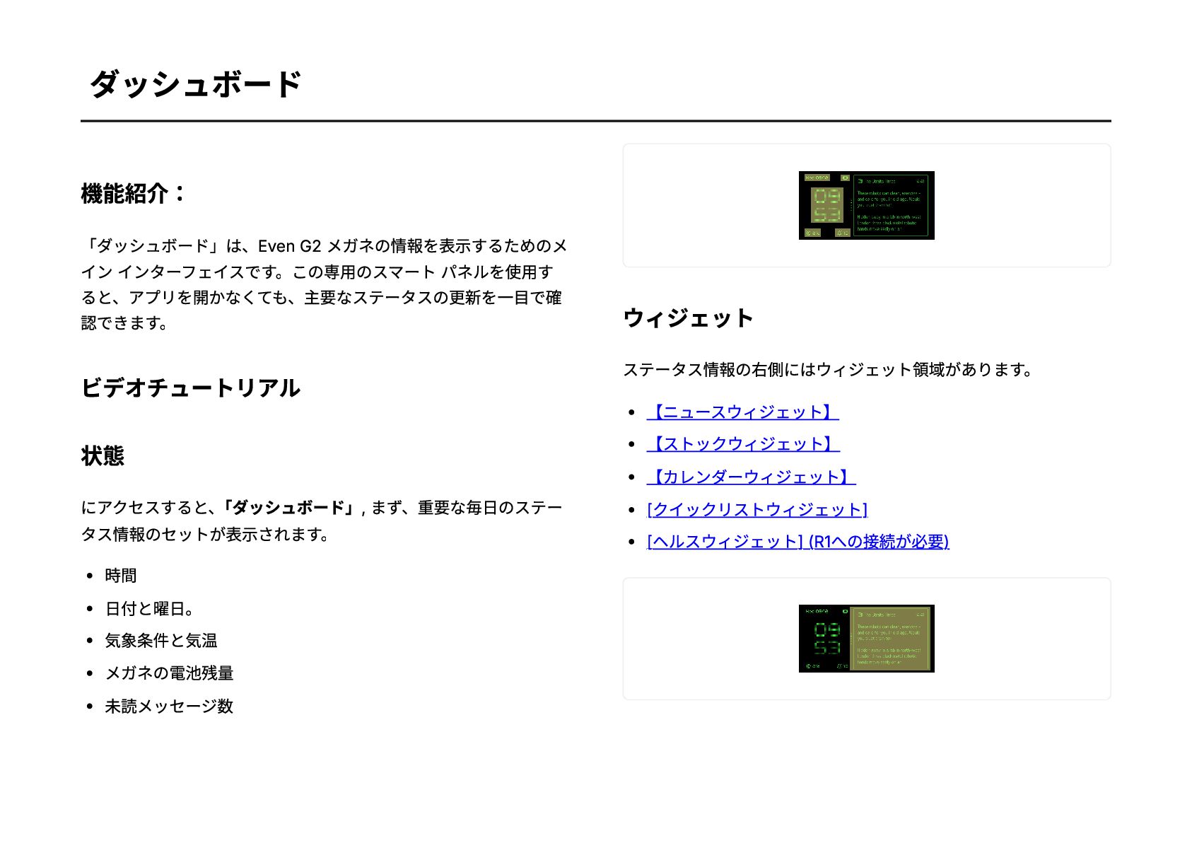Even Realities公式サイトのサポートページをAI(Google Antigravity)で自動的に日本語化し、さらにそれを編集させてクイックスタートガイドとして構成したものです。
