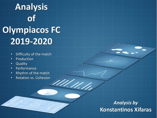 46 in that season) - Very low Quality (40th out of 46 in that season) - Low Performance (33rd out of 46 in that season) - Over-Rotation (8 out of 10 players) - Δ(Days) Rotation = 10.84. Unnecessary Over-Rotation (next match against Atromitos in 5 days and the next 2 matches against Panionios & Lamia). Over-Rotated the team on the previous match against Xanthi. 5 easy matches in the row for the appropriate rotation before the series of matches against Arsenal-PAOK-Arsenal. - The medium Rhythm of the match (slowest of the 4 matches against Lamia) reduced the superior Quality of the players of Olympiacos (the line-up of Olympiacos has 10 times more Value than Lamia’s Line-up) + The good performance of the Defenders or/and the inability of Lamia (1 shot only, from set play) + The small difficulty of the match (40th out of 46 in that season) Although the negative parameters on the management of the match are important, the Δ(Value) is big. The 8 shots of Olympiacos is the evidence of it’s superiority on such a poor Performance against an opponent with very low capabilities. Win (0-1) seems like a fair result. The final result (Draw) had serious possibilities. Since it was the 1st match (Cup), the result forced Olympiacos to a low Rotation on the next math against Lamia (3-2) just 8 days before Arsenal-PAOK-Arsenal. The result forced Olympiacos to over-rotation against Panionios in order to balance it. Result = Lost the cohesion of the team and Olympiacos was unable to follow the fast-rhythm of the Arsenal (20% less). Lost 0-1. Lamia Olympiacos Result 0 0 Performance 563.6 682.2 Δ (performance) % 21 Production 8.7 9.9 Quality 65.1 68.7 Rhythm of the match (9.3) medium Δ(Days of rest) Team 3 Δ(Days) Players Average 13.84 Δ (Days) Rotation 10.84 Over-Rotation Difficulty of the match (40 / 46) very easy