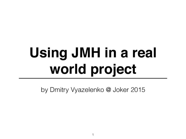 In this talk I would like to share the experience of using JMH library to drive performance optimizations and track performance regressions. You’ll learn how we use JMH, which issues and pitfalls were encountered and overcome along the way.