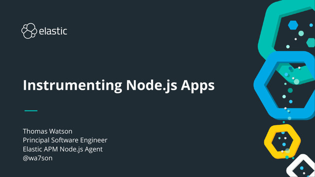 Identifying, debugging, and fixing Node.js production performance issues is difficult. Learn about Node.js instrumentation and how Elastic APM can help. See how to improve error monitoring and how to automatically instrument incoming HTTP requests, database queries, etc.