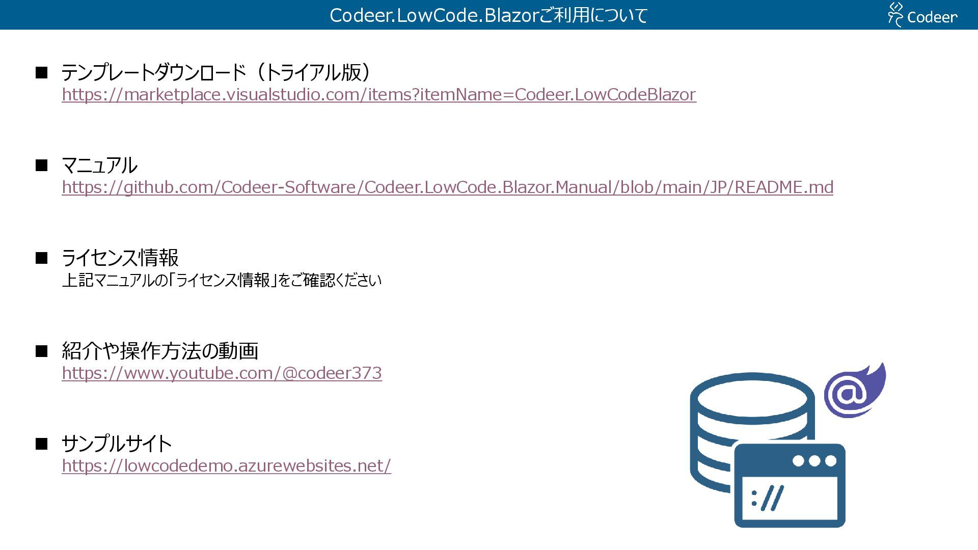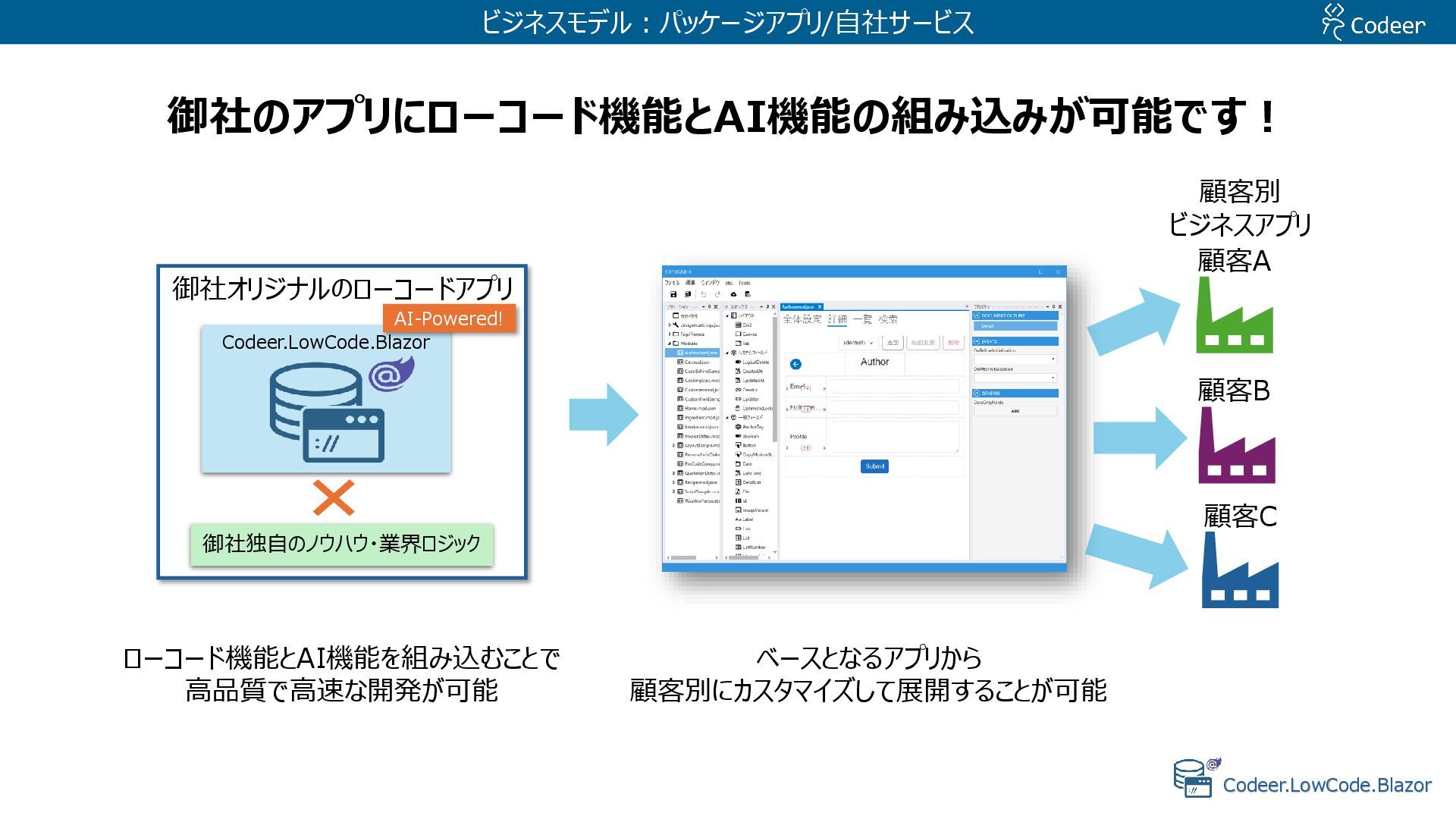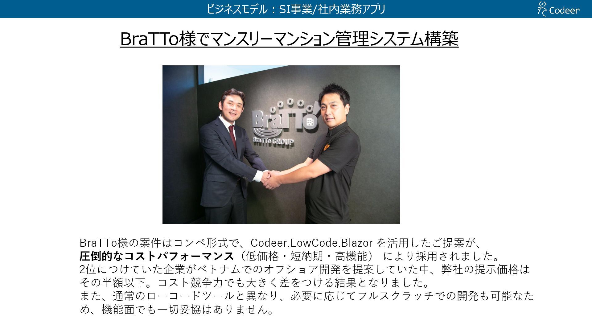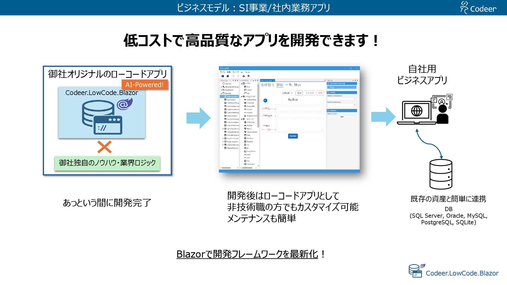 ◼ ローコード開発開始 Codeer.LowCode.Blazor を使って請求書画面を作成 →1日で完成し、感動 ◼ 展示会参加 製品の特長を学ぶ ◼ 提案に向けてデモ作成 とにかくたくさん製品を使って開 発し、製品の理解を深める →できることが増え、自信がつく ◼ アウトプット 開発での気づきをもとにマニュア ル作成やブラシュアップを行う ◼ 開発をメインで担当 スピード感をもって開発 改善もすぐ実施 →実際に使われる機能を実現 ◼ ローコード開発研修 製品の基本的な使い方をハン ズオンで実施 使う→伝える を何度も繰り返すことで 短期間で案件のメインを担当できるようになった