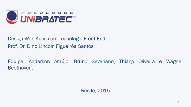 UNIBRATEC Pós-Graduação em Design Web Apps com Tecnologia Front-End Prof. Dr. Dino Lincoln Figueirôa Santos
