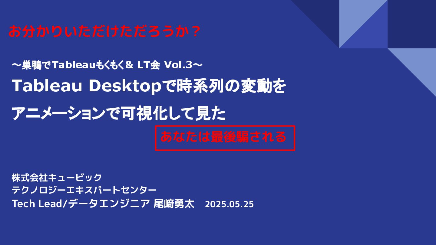 2025年5月24日に巣鴨でTableauもくもく& LT会 Vol.3にてLT発表した内容です(Apprentice時代の者になります)