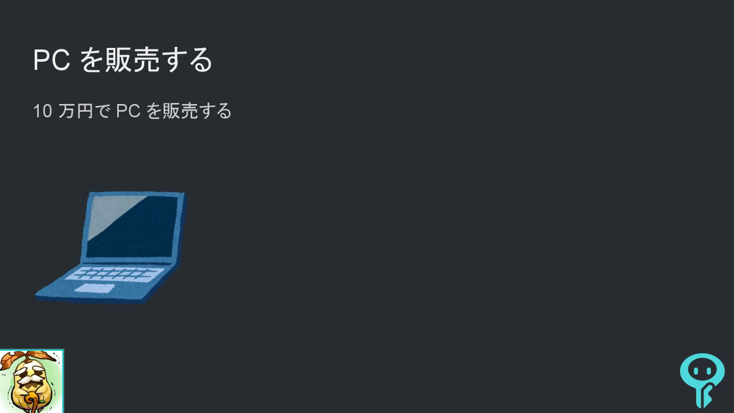 PC を販売する 10 万円で PC を販売する
