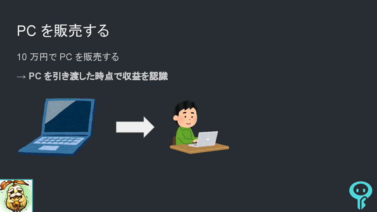 PC を販売する 10 万円で PC を販売する → PC を引き渡した時点で収益を認識