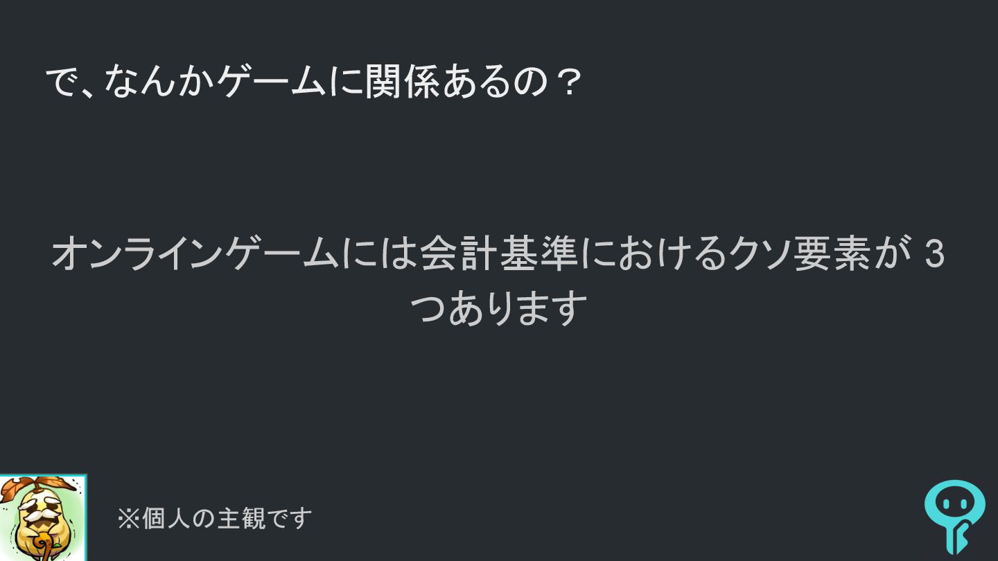 で、なんかゲームに関係あるの? オンラインゲームには会計基準におけるクソ要素が 3 つあります ※個人の主観です