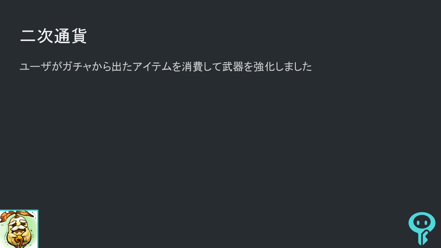 二次通貨 ユーザがガチャから出たアイテムを消費して武器を強化しました