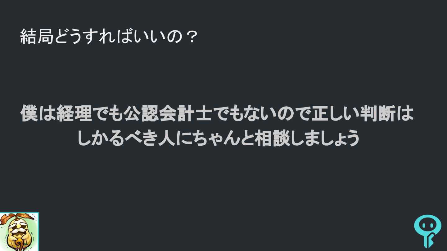 結局どうすればいいの? 僕は経理でも公認会計士でもないので正しい判断は しかるべき人にちゃんと相談しましょう