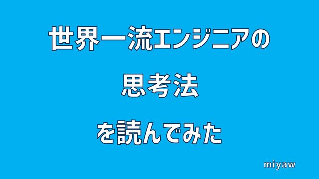 世界一流エンジニアの 思考法 を読んでみた miyaw