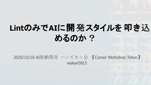 2025/10/10 AI駆動開発 ハンズオン会 【Cursor Workshop Tokyo】 wakye5815