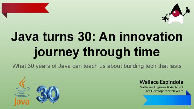 This presentation celebrates 30 years of Java — from its launch on May 23, 1995, to its continued evolution in 2025 and beyond.