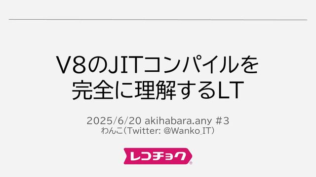V8のJITコンパイルを 完全に理解するLT 2025/6/20 akihabara.any #3 わんこ(Twitter: @Wanko_IT)