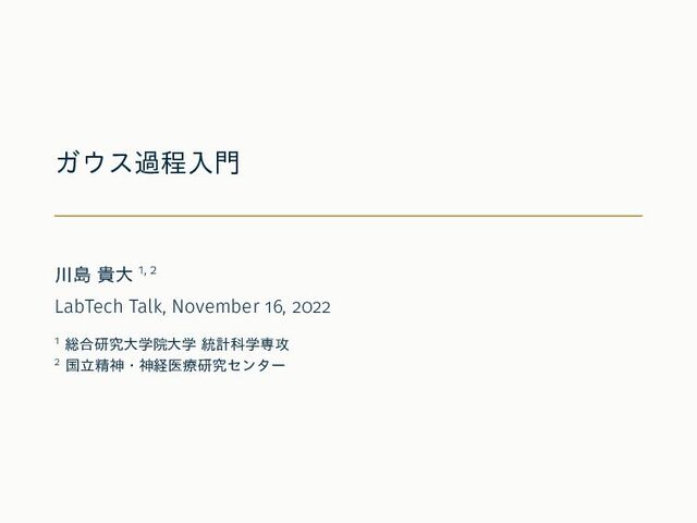 ガウス過程入門 川島 貴大 1, 2 LabTech Talk, November 16, 2022
