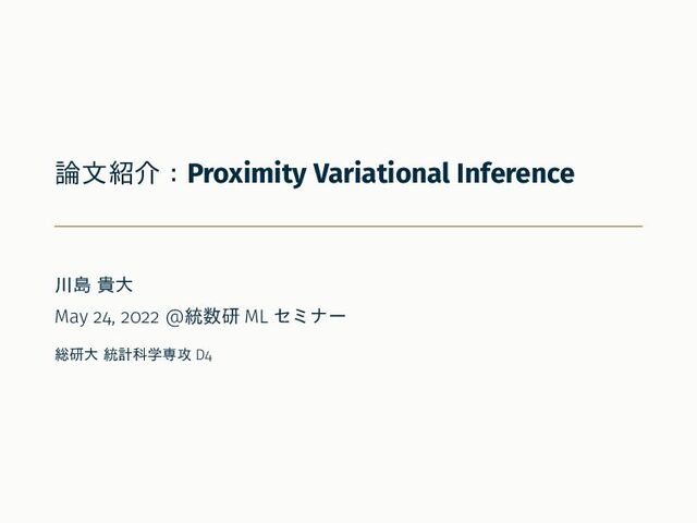 1. 論文概要 論文情報 • Title: Proximity Variational Inference • Author: Jaan