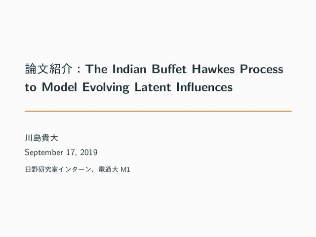 Influences”, Xi Tan, Vianyak Rao, and Jennifer Neville • UAI2018 ͷจ • աఔͷ Hawkes Process ͱϊϯύϥϕΠζͷ Indian Buffet Process Λ౷߹ͨ͠Ϟσϧ • ঢ়ଶۭؒϞσϧͷϊϯύϥϕΠζ֦ுͱଊ͑ΒΕΔ • ෳ࣌ͰಘΒΕͨυΩϡϝϯτ͔ΒɼτϐοΫͦͷڧ ͷਪҠͳͲΛਪఆͰ͖ΔʢجຊతʹࣗવݴޠσʔλΛ ఆʣ 2
