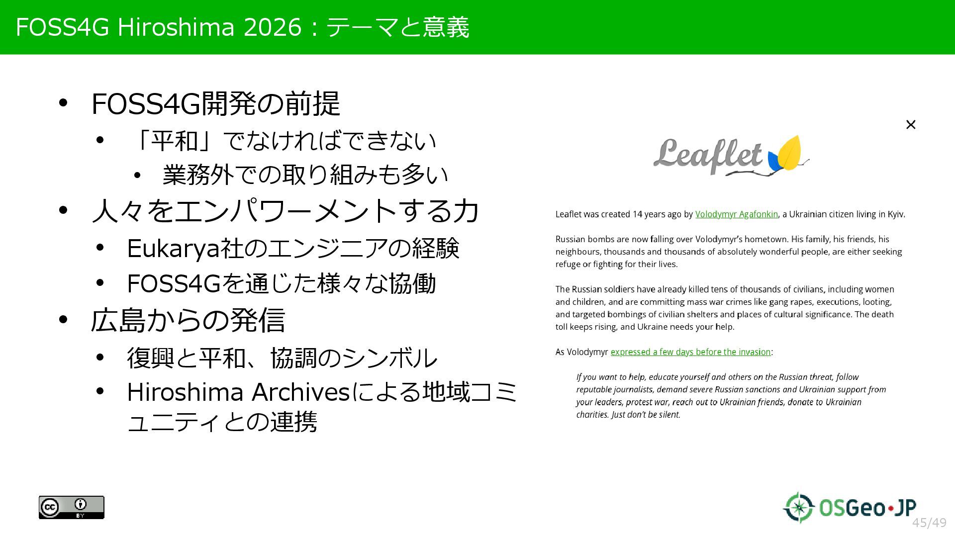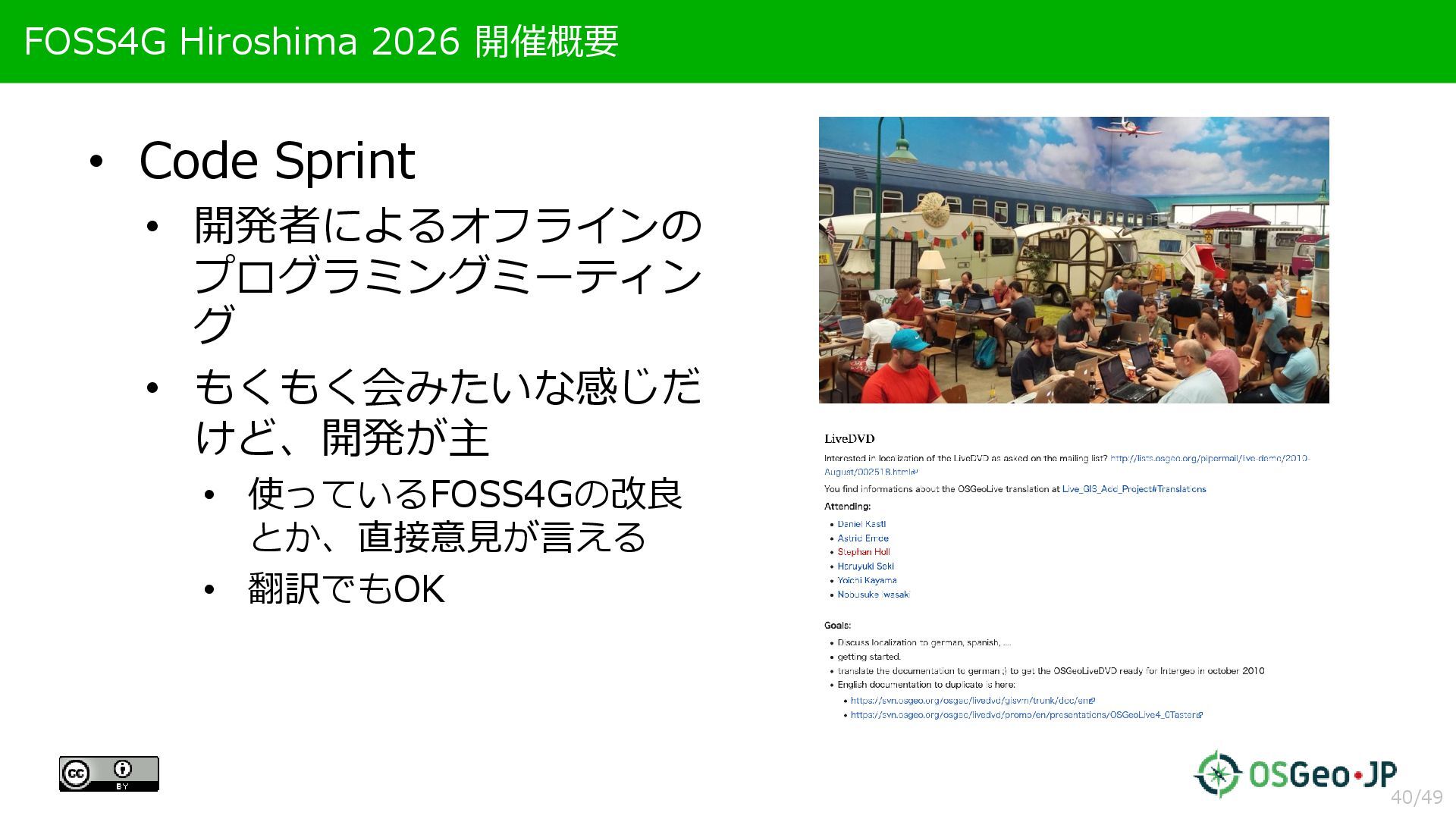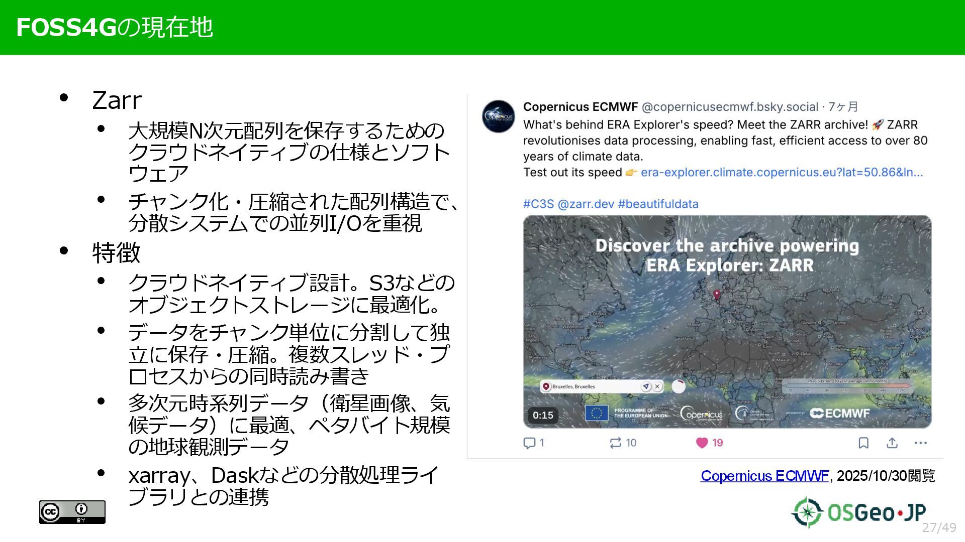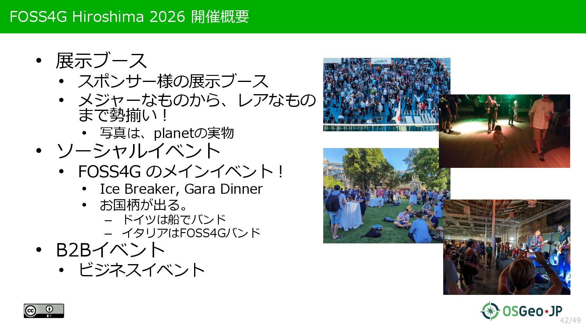 800〜1000語程度のアブス トラクト投稿 – 締め切り後、Scientific Committeeによる審査 – 採択決定通知 • 口頭発表、LT、(ポスター) • Step2 – 期限までにISPRSのテンプレ ートに基づきフルペーパーと して投稿。適合性と剽窃チェ ックし受領 • 会議前後にサイト公開 https://2025.europe.foss4g.org/call-for-proposals/academic-program/ • open hardware • open source software development • open geospatial data • (geo)spatial data sharing systems and big data analysis • GIS for real-time applications, disaster response and recovery • geospatial health informatics • open (geospatial) cloud computing and cybersecurity • open (geo)education • participatory mapping and crowdsourcing • Digital Twins, urban analytics, sustainable urban planning and development • GeoAI and geospatial Machine Learning • Natural Language Processing and Large Language Models • Remote Sensing for water resources management, biodiversity and ecosystem services 30
