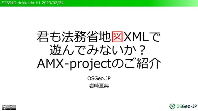 FOSS4G Hokkaido #1 2023/02/24 君も法務省地図XMLで 遊んでみないか? AMX-projectのご紹介 OSGeo.JP 岩崎亘典