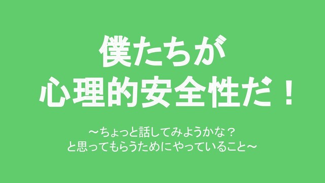 2021年6月27日(金) アジャイルひよこクラブ「心理的安全性のためにどんなことやってる?」登壇資料 https://agile-hiyoko-club.connpass.com/event/219704/