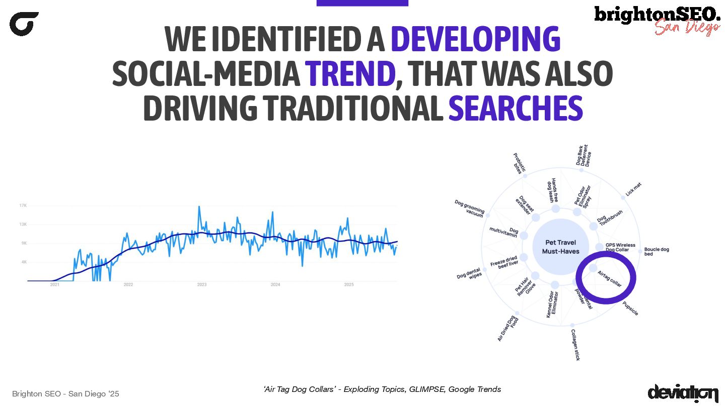 We also spotted a cultural trend around AirTag dog collars and helped the brand lean into it — creating both a product and a discoverability strategy that bridged social, search, and creator partnerships.