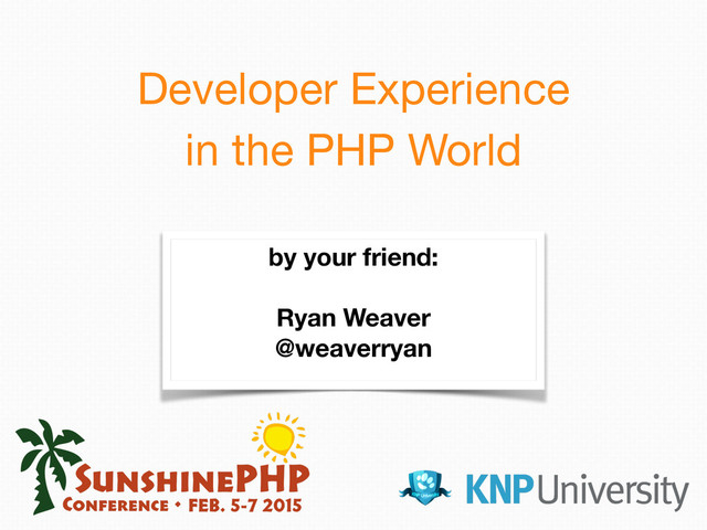 We're sharing more, we're writing more blog posts and we're building libraries with increasingly clever names. So why does it sometimes *still* feel like rage-tossing my computer out of the window is part of solving development problems? I thought the future would let me composer install unicorns and rainbows directly into my app!? Shouldn't my experience as a developer be smoother? Having *only* great tools is just about as useful as locking me inside a Home Depot and asking me to build a house. So in this talk, we'll look at developer experience (DX) in the PHP world by going through some DX wins and some DX fails, um, "todos". I'll also share what some communities and libraries are doing specifically to make our lives easier and more productive. But ultimately, DX starts with *us*: developers who notice when things are too difficult and improve them. By the end of this talk, I hope the PHP world will have a few more DX heroes.