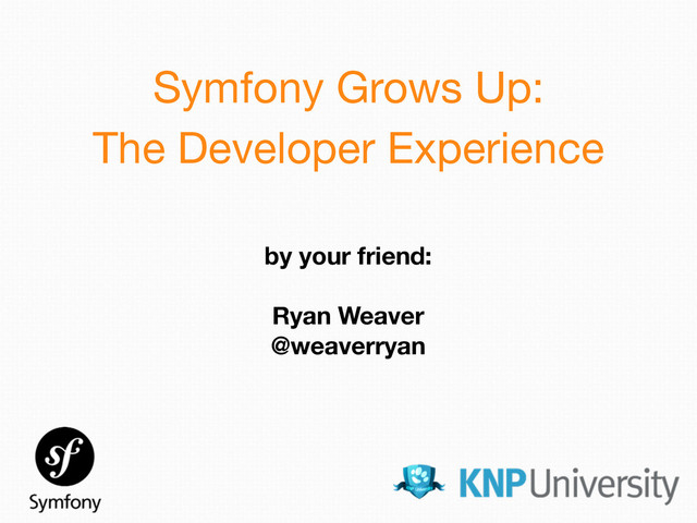 The Symfony Developer Experience is all about reducing complexity (and perceived complexity) but keeping the same high-quality framework and best practices we love. In this talk, I'll show you what we've done together and where we're going next.