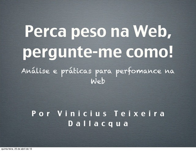 Não tem importância, até o momento que é percebida como problema...então é nossa culpa Performance é mais do que uma funcionalidade, é a funcionalidade MAIS importante quinta-feira, 25 de abril de 13