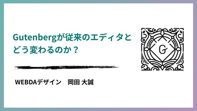 WEBDAデザイン 岡⽥ ⼤誠 Gutenbergが従来のエディタと どう変わるのか?