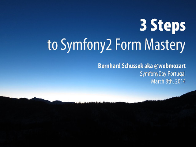 The Symfony2 Form component makes form processing a snap. It features a very flexible architecture and a myriad of configuration options that you can use to implement a wide variety from simple to very complex forms. However, knowing how to use this effectively can be a challenge. This session will give you a deeper understanding of the inner workings of the Form component and show how master the component in three simple steps.