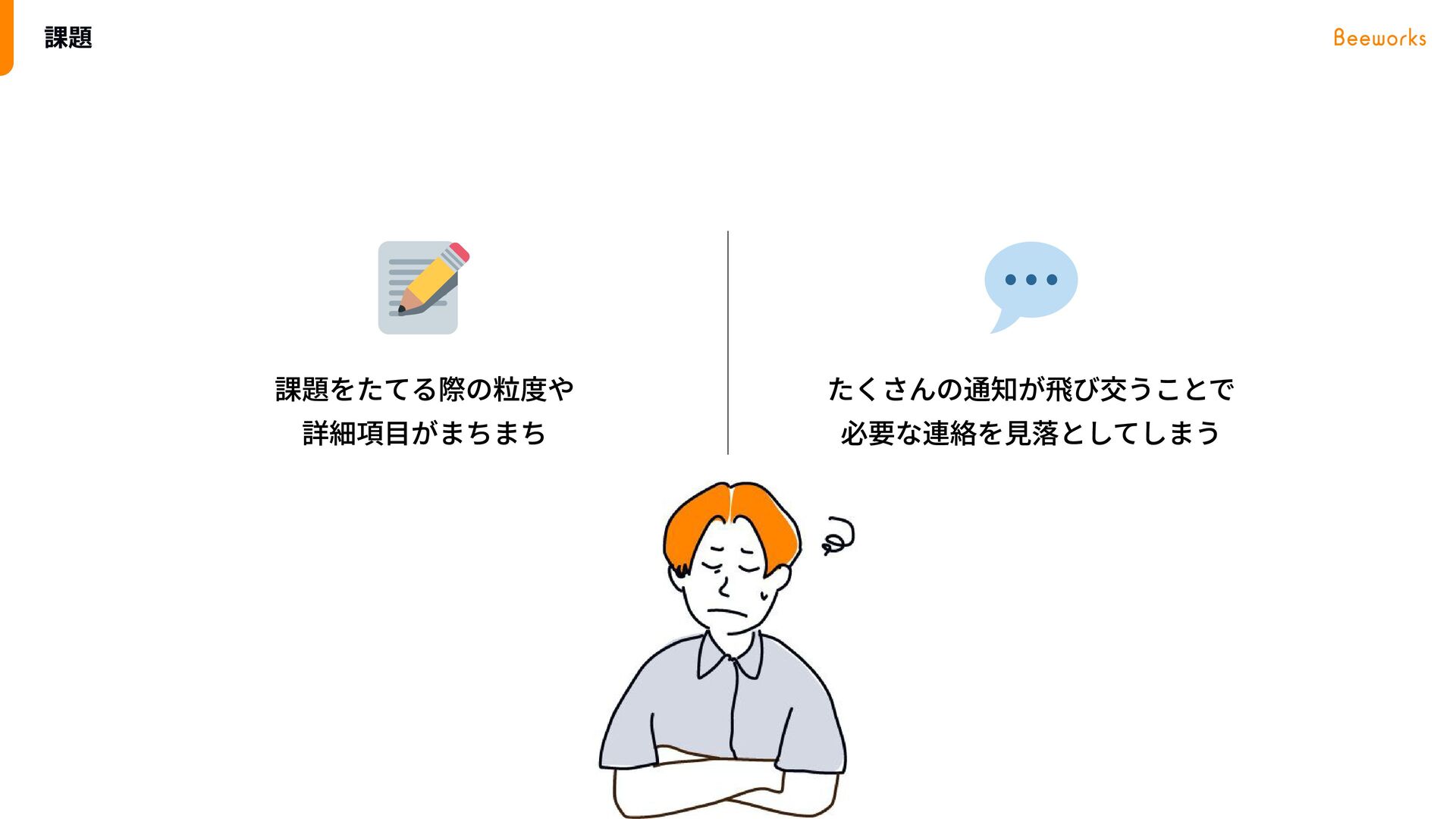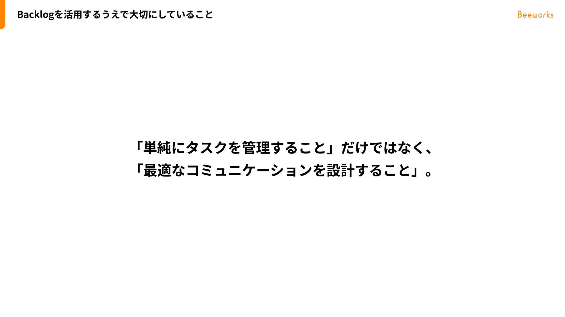 「Thoughtful design」を掲げるビーワークスがBacklogを活用するうえで大切にしているのは、「単純にタスクを管理すること」だけではなく「最適なコミュニケーションを設計すること」。当セッションでは、大規模サイト運用のプロジェクトマネージャーを多数担当してきた漆迫が、Backlogを使って“人に寄り添う仕組み“をどのようにデザインしているかをお話しします。