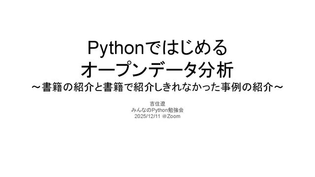 Pythonではじめるオープンデータ分析〜書籍の紹介と書籍で紹介しきれなかった事例の紹介〜
