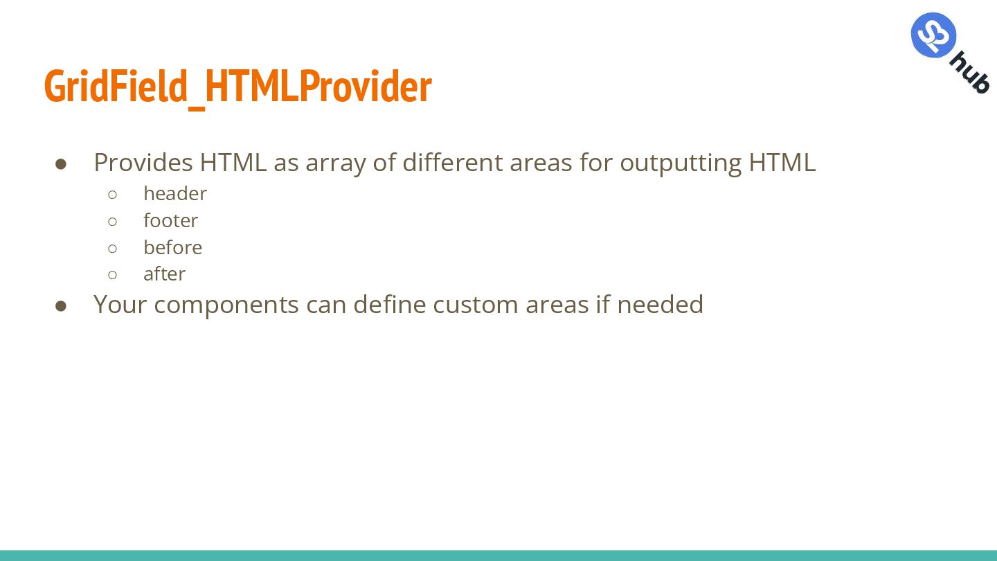 5. GridField_HTMLProvider • Provides HTML as array of different areas for