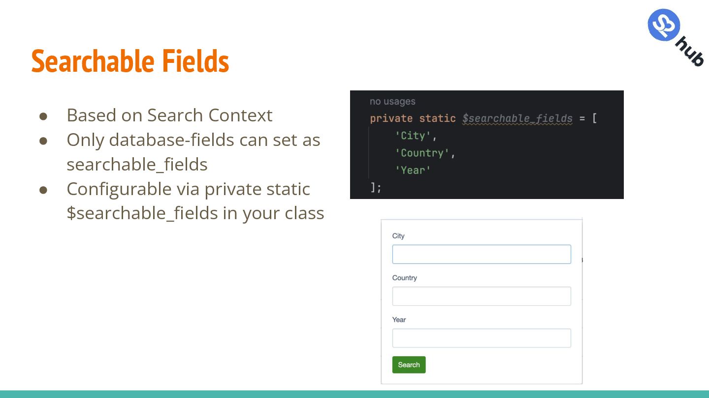 can set as searchable_fields • Configurable via private static $searchable_fields in your class