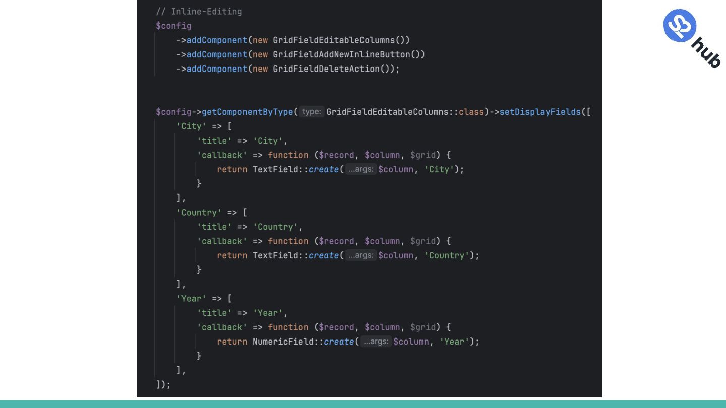 7. Adjust your configs globally • GridFieldConfig has the updateConfig hook