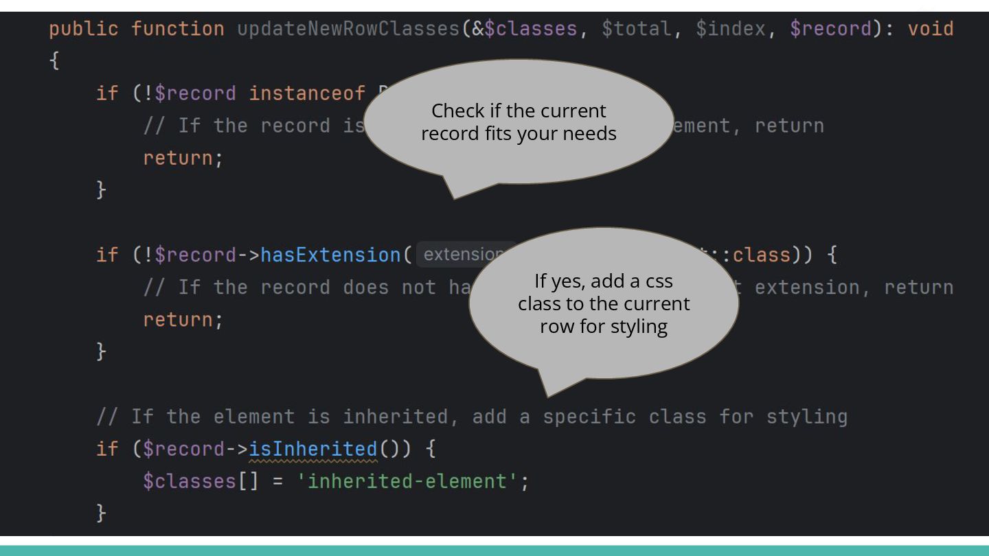 record • GridField calls “updateNewRowClasses” hook • Write an Extension to GridField and update it