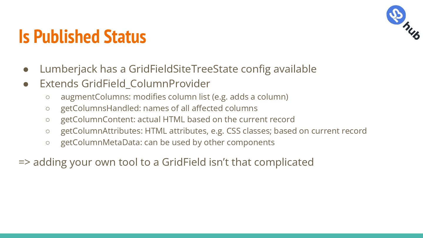 21. Is Published Status • Lumberjack has a GridFieldSiteTreeState config available
