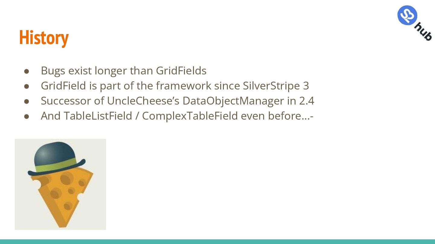 part of the framework since SilverStripe 3 • Successor of UncleCheese’s DataObjectManager in 2.4 • And TableListField / ComplexTableField even before…-