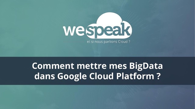 Au programme de cette session des #WeSpeakCloud : Big Data et Google Cloud Platform.
