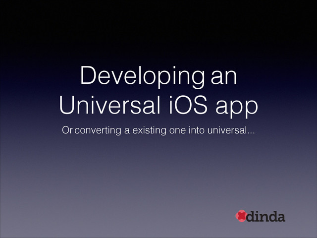 This presentation shows how to develop an universal iOS app or "convert" a existing one into universal. An universal app must work in iPad/iPod and iPhone.