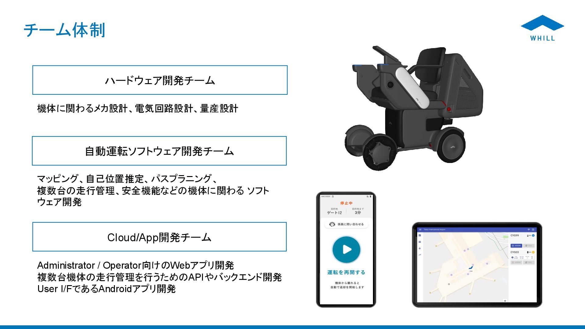 Operator向けのWebアプリ開発 複数台機体の走行管理を行うためのAPIやバックエンド開発 User I/FであるAndroidアプリ開発 Cloud/App開発チーム