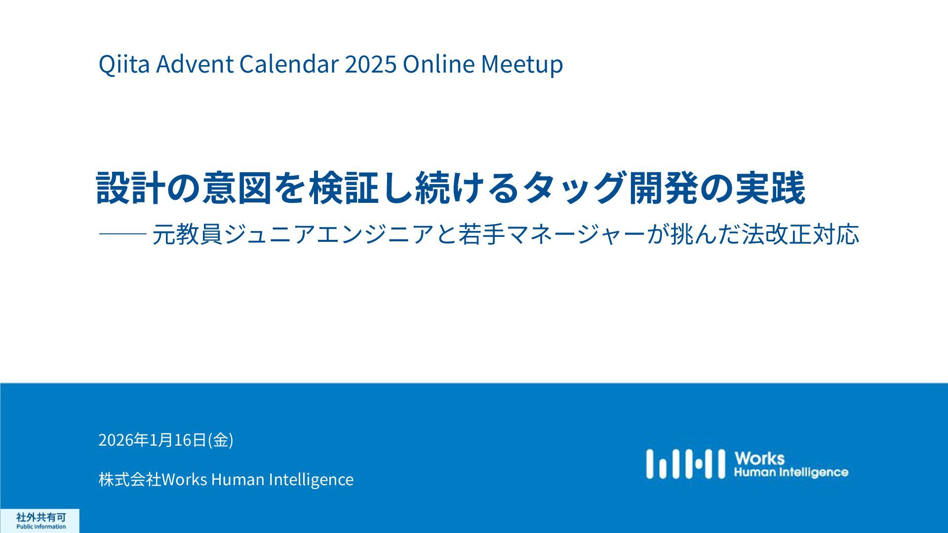 © 2026 Works Human Intelligence Co., Ltd. 設計の意図を検証し続けるタッグ開発の実践 Qiita Advent