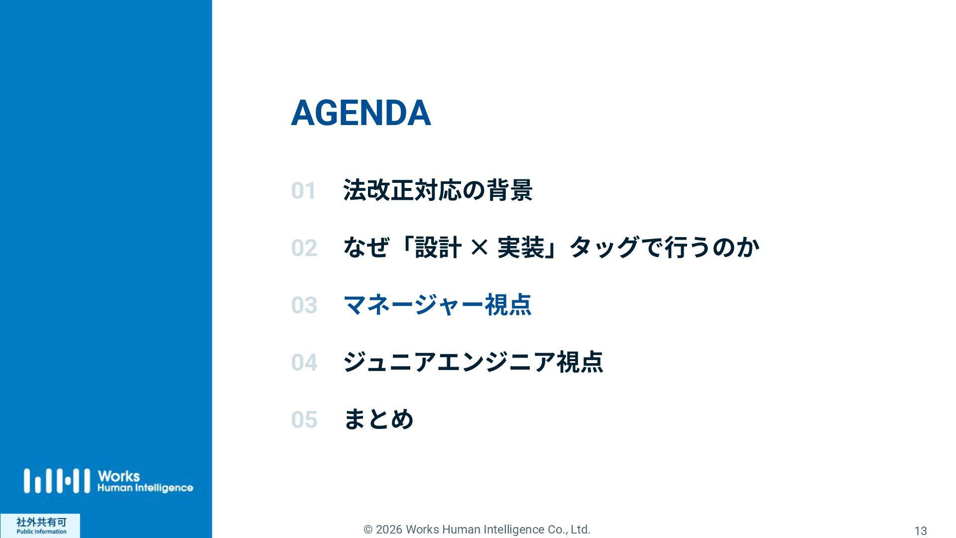 © 2026 Works Human Intelligence Co., Ltd. AGENDA 13 01