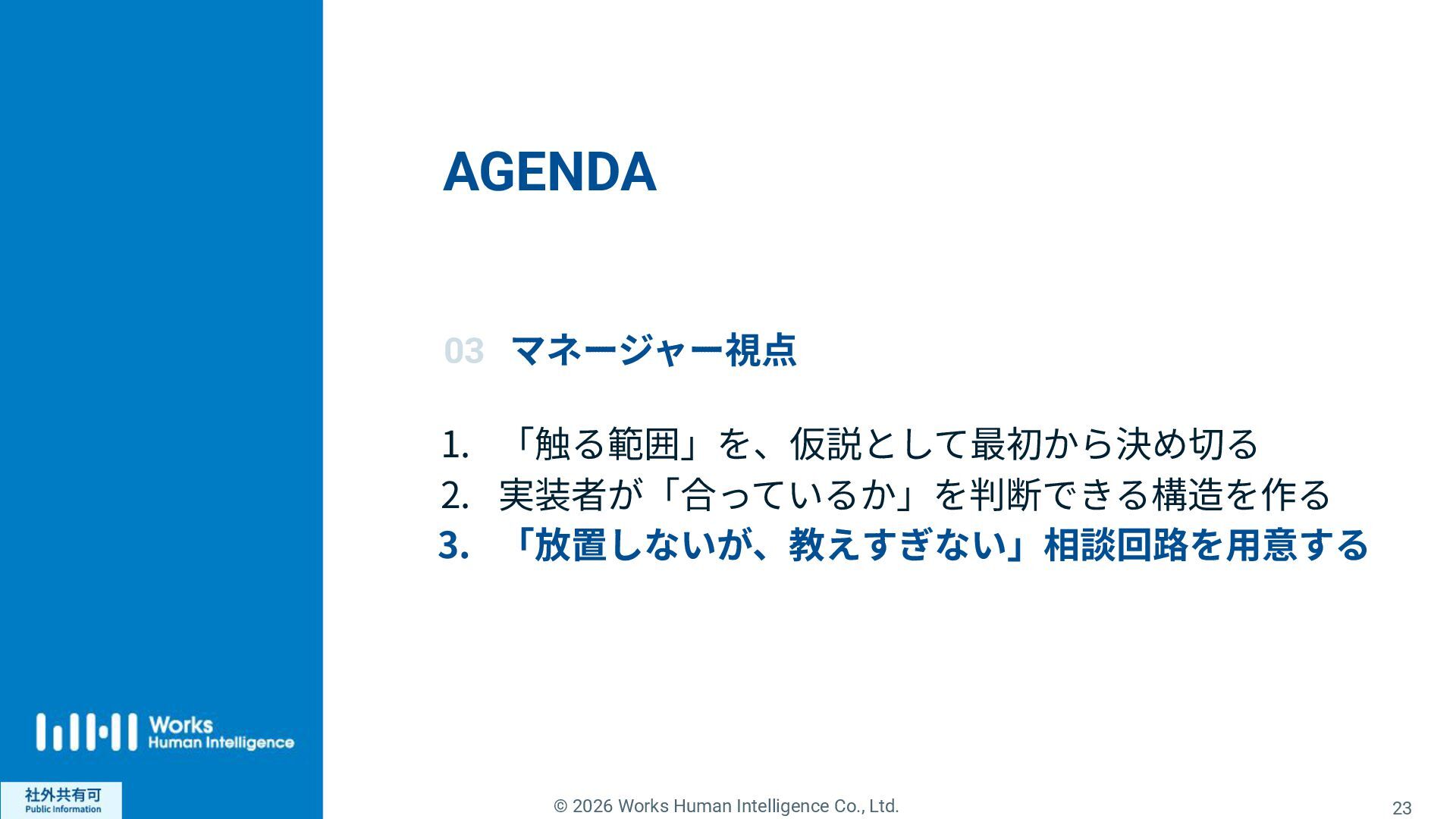 © 2026 Works Human Intelligence Co., Ltd. AGENDA 23 03 マネージャー視点