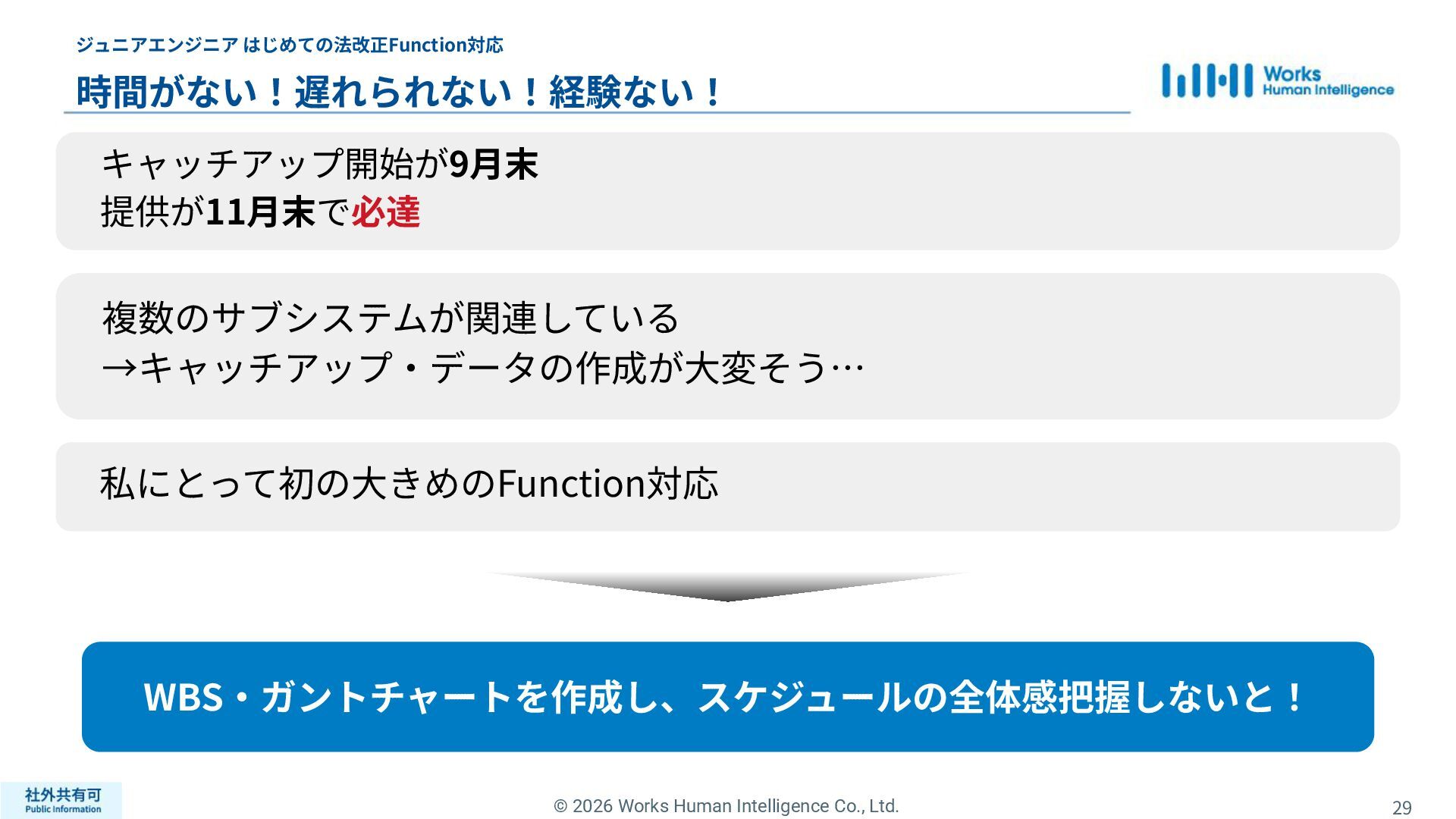 © 2026 Works Human Intelligence Co., Ltd. 29 時間がない!遅れられない!経験ない! ジュニアエンジニア