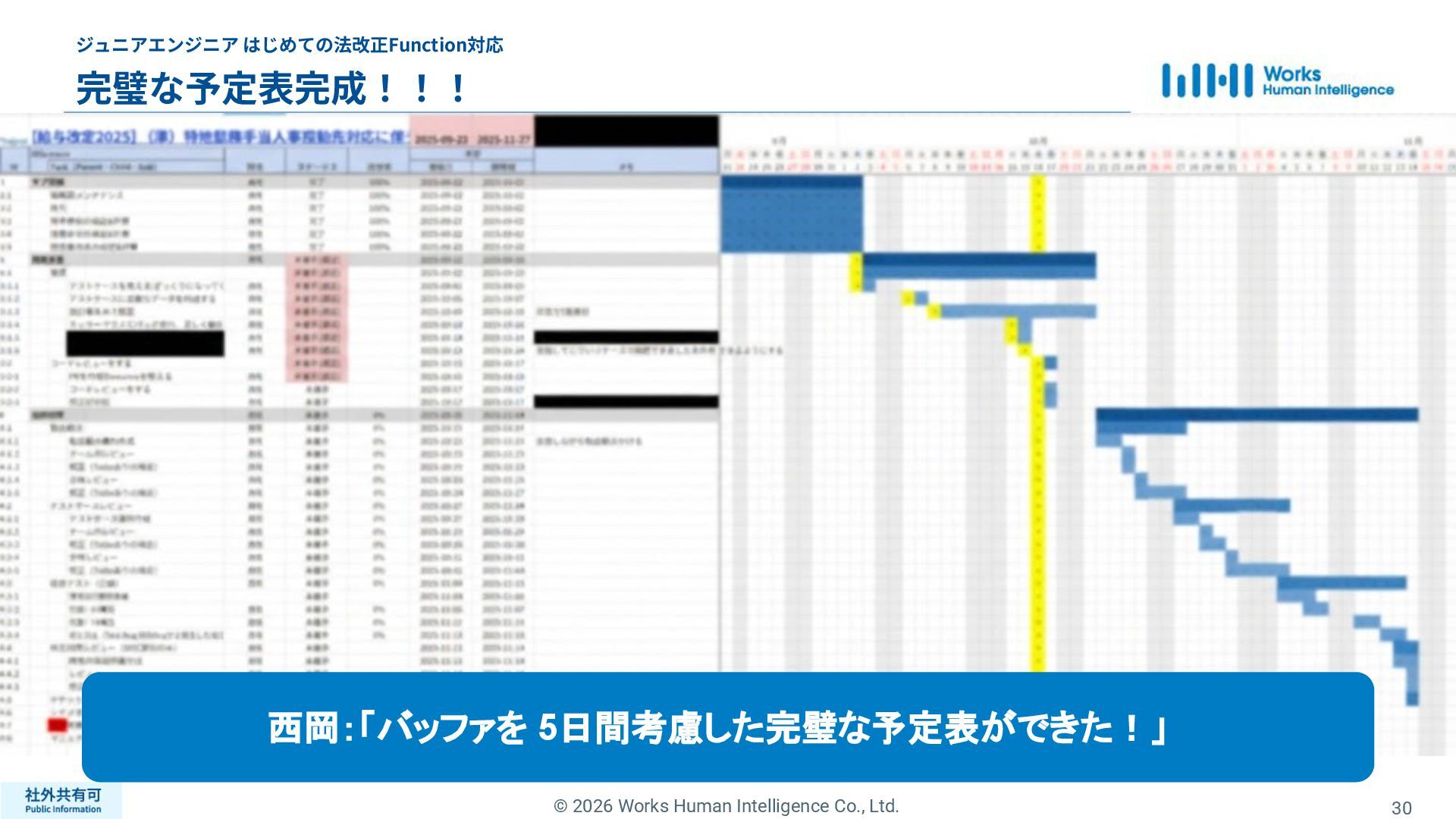 © 2026 Works Human Intelligence Co., Ltd. ジュニアエンジニア はじめての法改正Function対応 完璧な予定表完成!!!