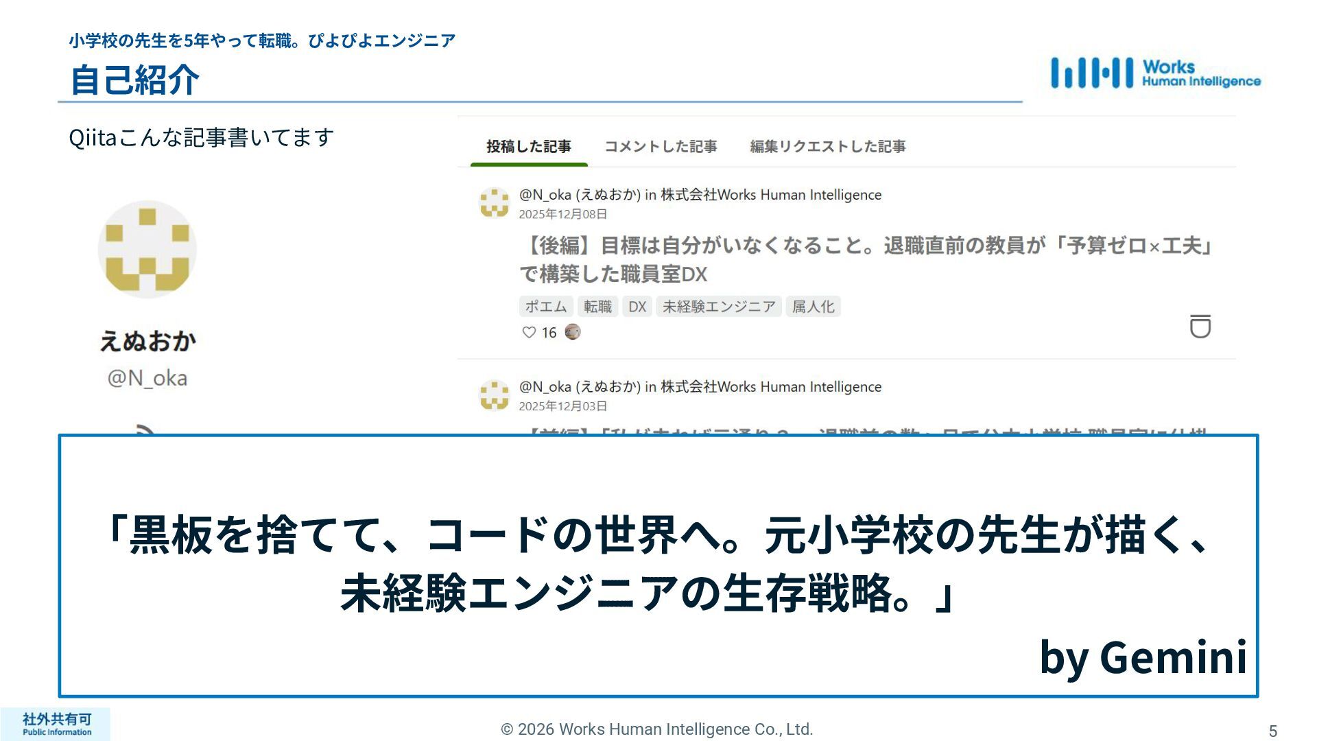 © 2026 Works Human Intelligence Co., Ltd. 5 ⾃⼰紹介 Qiitaこんな記事書いてます
