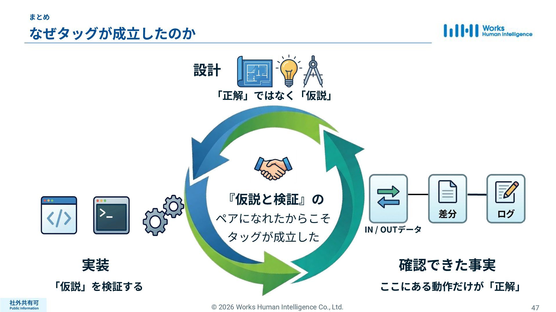 © 2026 Works Human Intelligence Co., Ltd. 47 なぜタッグが成⽴したのか 『仮説と検証』の