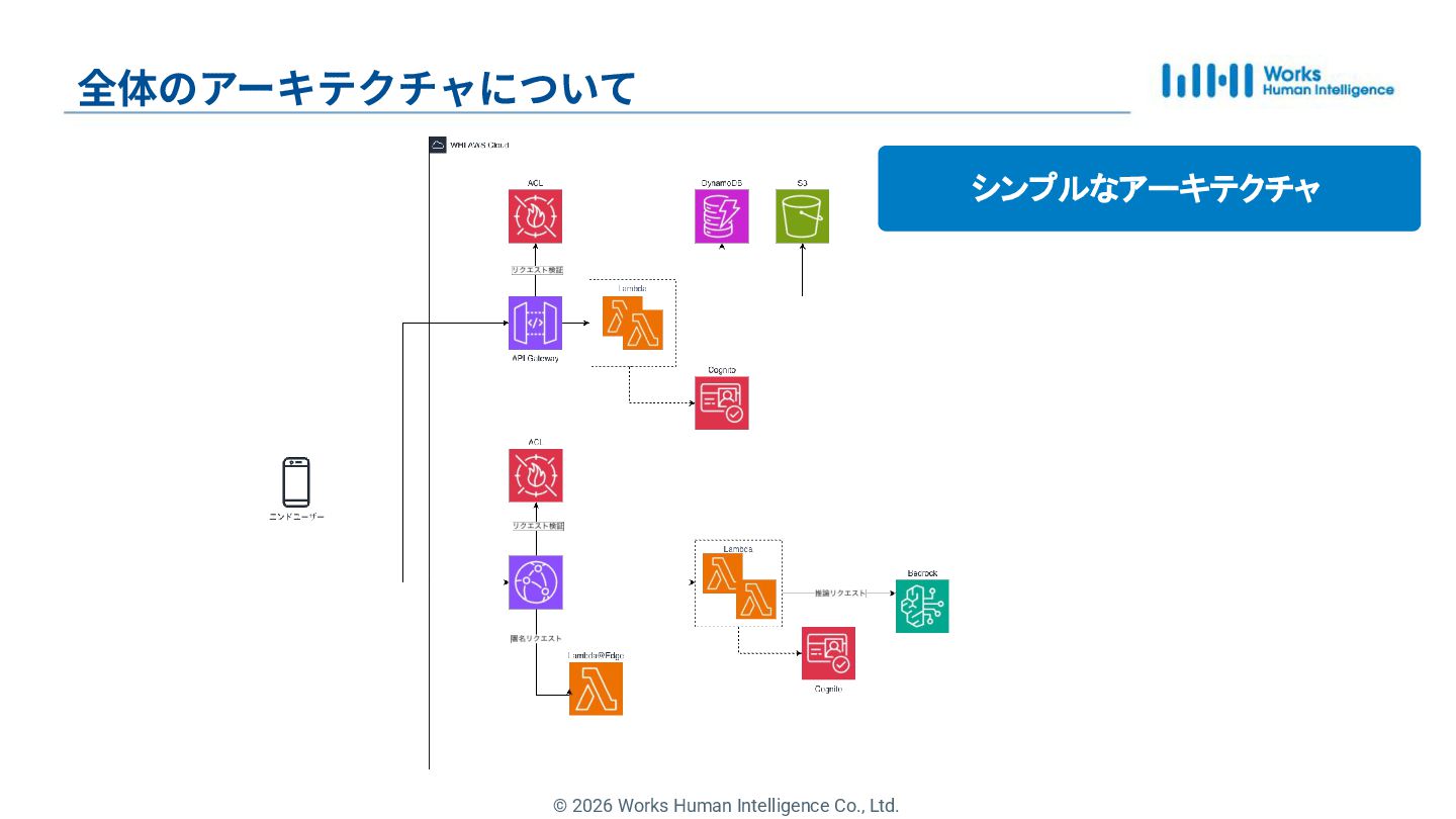 © 2026 Works Human Intelligence Co., Ltd. 全体のアーキテクチャについて シンプルなアーキテクチャ
