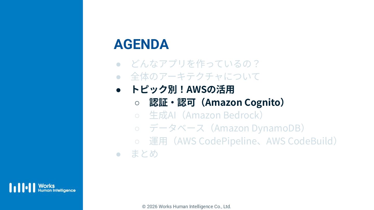 © 2026 Works Human Intelligence Co., Ltd. • Amazon Cognitoとは?